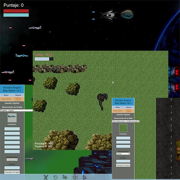 The name of the JS Framework was StradexEngine (same name as with my first try with C++ and GTK) and it was a fullfiling experience for me since I was able to apply lot of native JS knowledge into it. I used JS and JQuery for it. It had a nice Map Editor and I was able to make some few test games and actually a pretty nice space-based shooter game with it.